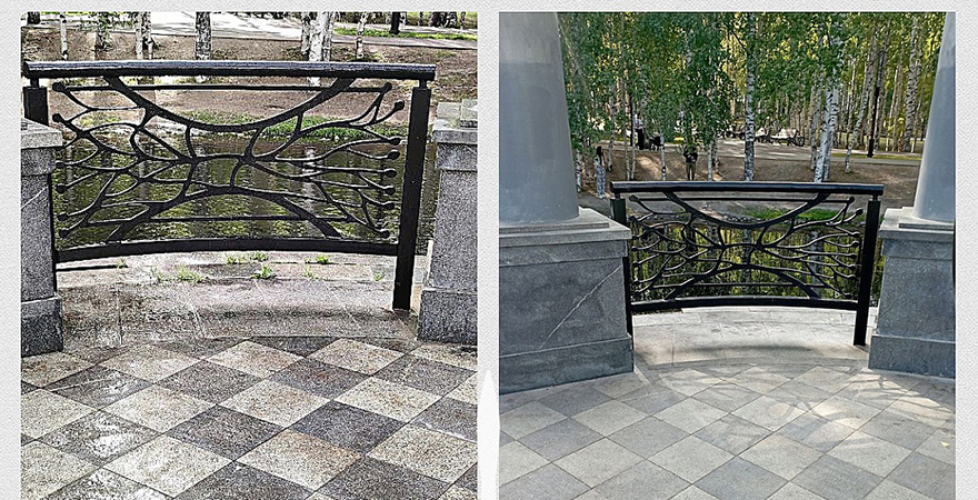 На детской площадке по ул. Ленина УЭСЗ починили пешеходную дорогу. Подрядчик от департамента городского хозяйства восстановил тротуарную плитку на Иртышской набережной.