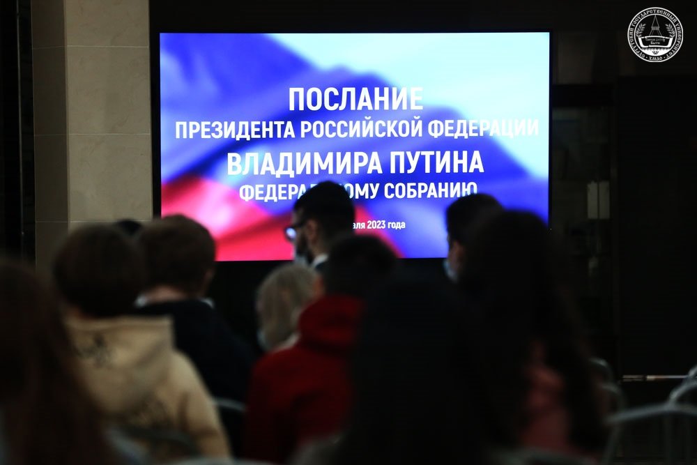 Во вторник, 21 февраля, президент России Владимир Путин в прямом эфире огласил Послание Федеральному собранию. К трансляции обращения главы государства подключились в атриуме Научной библиотеки преподаватели и студенты, в том числе участники молодежного политического клуба «ПУТь» Сургутского государственного университета.