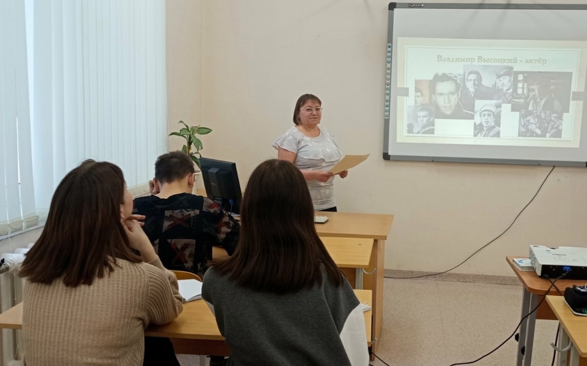 В рамках знаменательного события, с 28 января по 1 февраля 2023 года для студентов I и II курсов прошел литературный урок "Жизнь как струна", где они познакомились с биографией и творчеством В.С. Высоцкого, прослушали знаменитые песни, посмотрели яркие эпизоды спектаклей и кинофильмов с его участием.