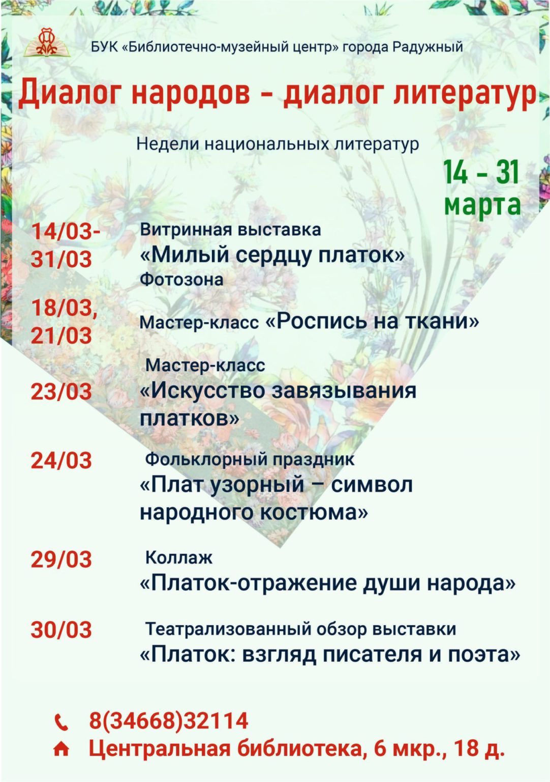 Уважаемые жители города! Приглашаем посетить мероприятия Недель национальных литератур “Диалог народов-диалог литератур”.