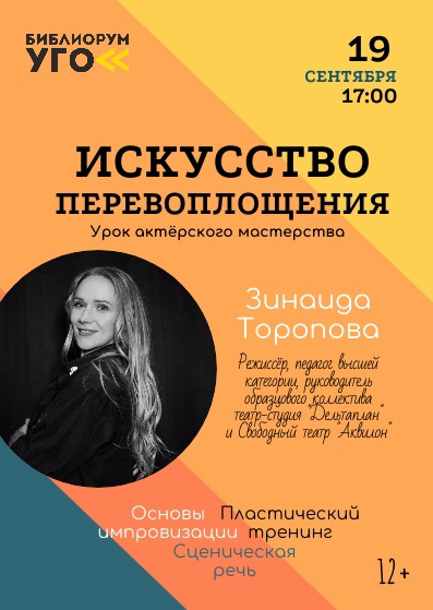 Мастер-класс по актёрскому мастерству «Искусство перевоплощения» состоится 19 сентября в 17:00 в библиоруме "Угол".
