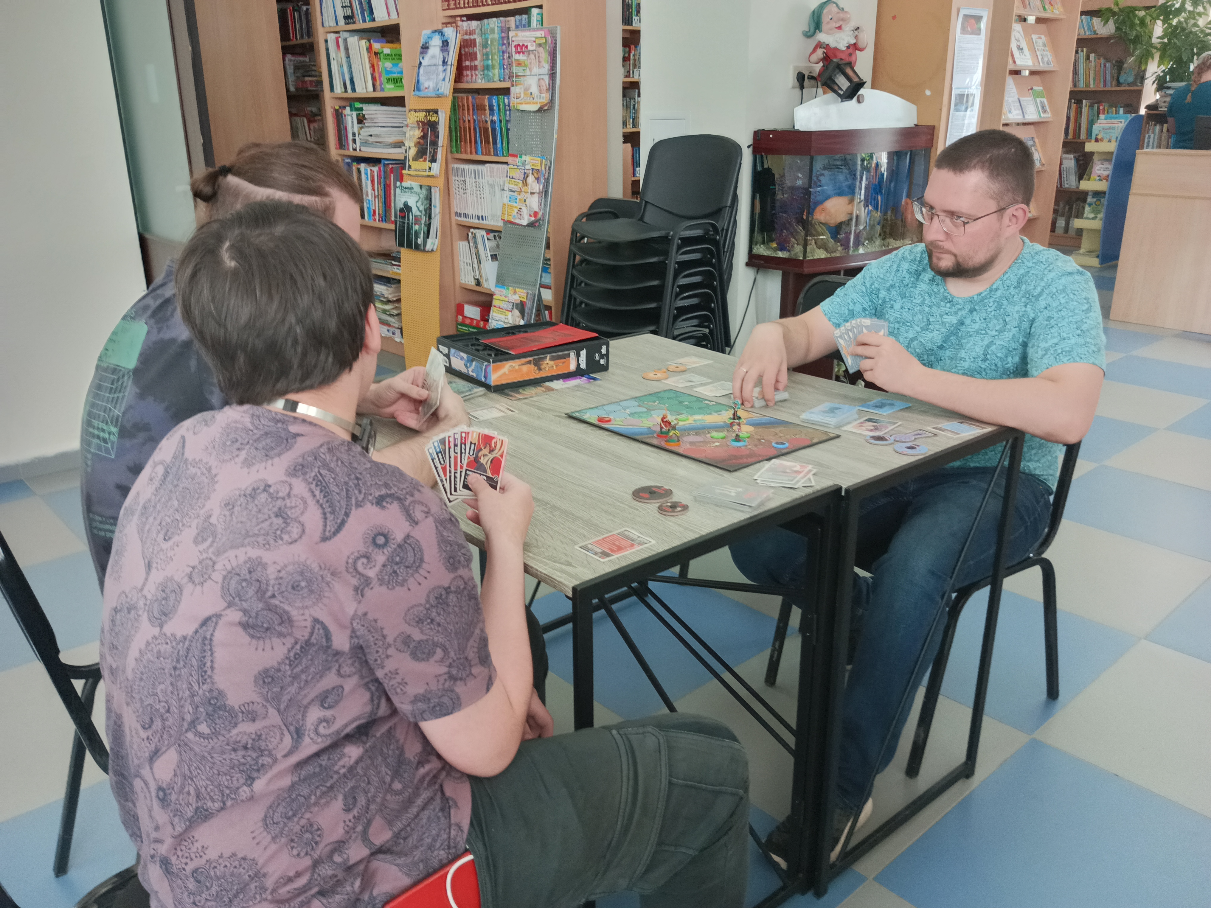 В прошедшее воскресенье гости играли в такие настолки, как «Колонизаторы», «Unmatched», «Маги леса», «Слова», «Морской бой» и «Индейцы». В гости в игротеку приходил руководитель клуба настольных игр «Чердак» Станислав Панов, который принес игры из коллекции клуба и познакомил с их правилами гостей.