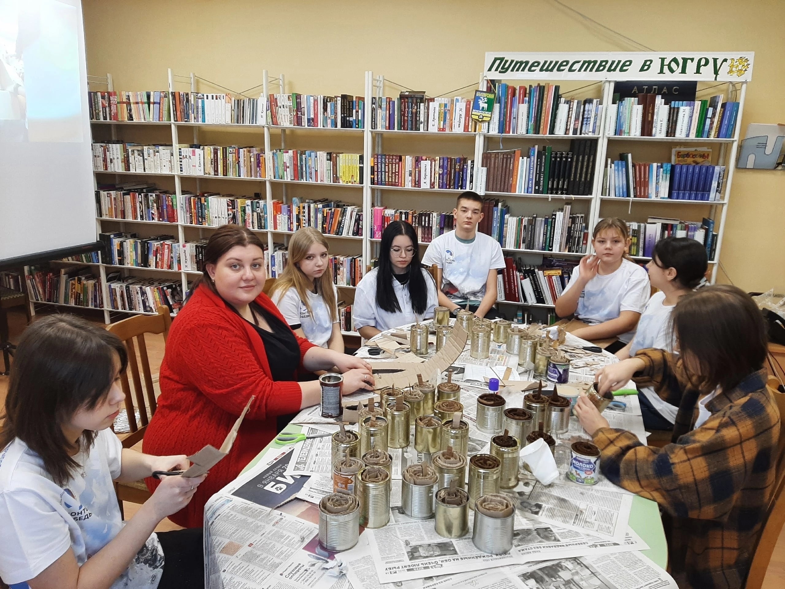В Городской библиотеке им. А.Н.Ткалуна прошел час добрых дел "Окопные свечи”. Волонтеры клуба "Авангард" и Волонтёры Победы в