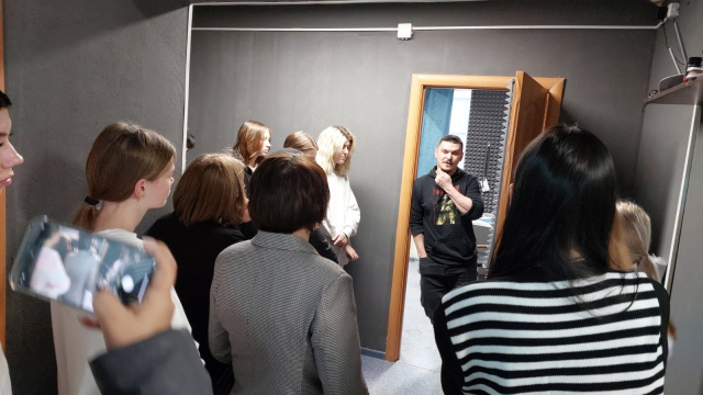 В рамках проекта по профориентации «Встреча с интересными людьми» сотрудники библиотеки организовали знакомство учащихся 9-го класса МАОУ «СОШ №4» с Иваном Кулаковым, журналистом и оператором Телерадиокомпании «Эфир Медиа».