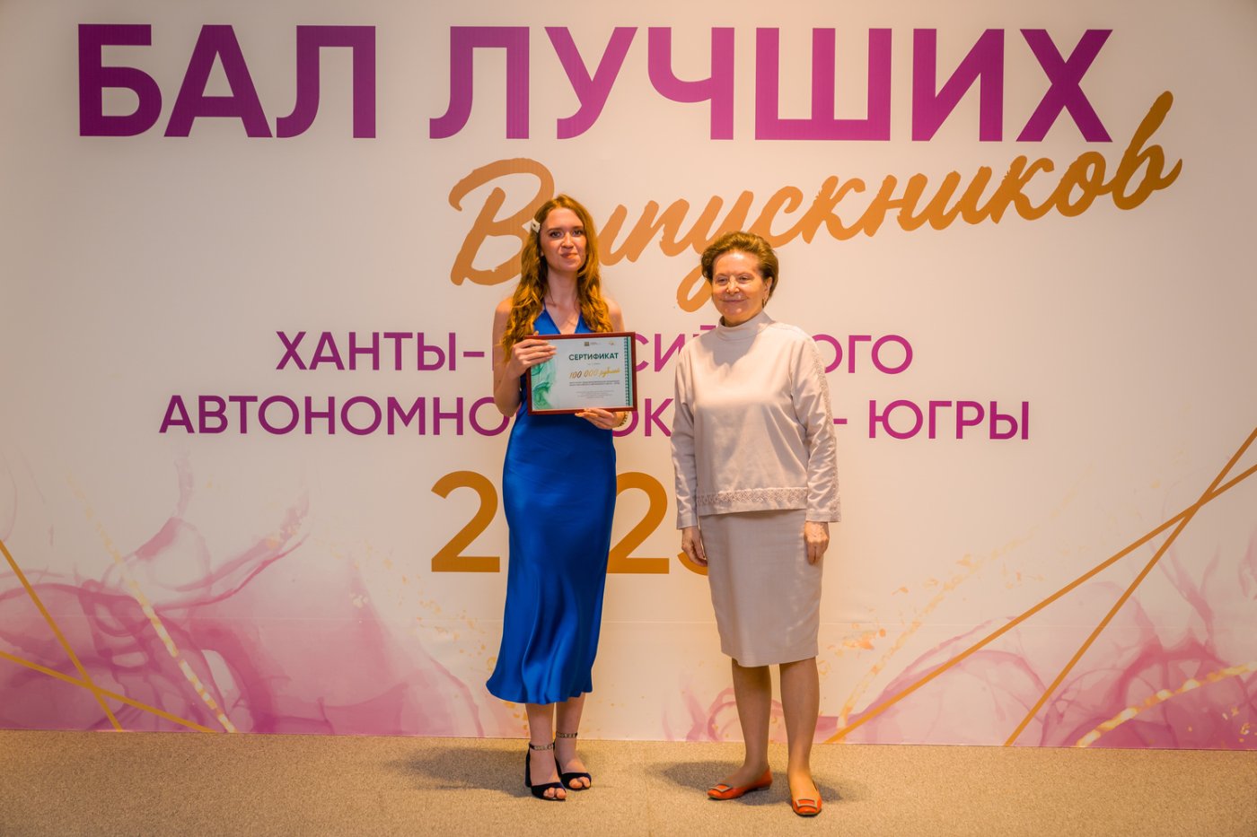 «Я думаю, что вы уже знаете, что мы увеличили размер премии за 100 баллов на ЕГЭ и ученикам, и их наставникам, что крайне важно. Надеемся, что этот стартовый капитал вам поможет в дальнейшем. По решению нашего Президента Владимира Владимировича Путина с 4 ноября текущего года по 12 апреля 2024 года в Москве на территории ВДНХ состоится международная выставка-форум «Россия». На ней будут представлены лучшие достижения страны и российских регионов. И в этой связи для вас — лучших выпускников 2023 года правительство автономного округа организуют возможность посетить эту выставку. Поздравляю!» — сказала губернатор Югры Наталья Комарова.