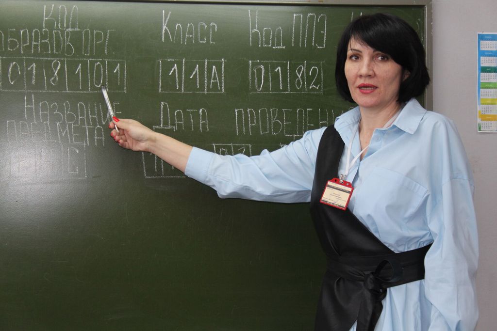 Далее им предложили пройти в аудиторию и сесть за парты. Учитель школы №2 Л.Д. Лаврентьева поприветствовала и сообщила о том, что цель акции – повысить информированность родителей выпускников, общественность города об особенностях экзаменационных процедур.