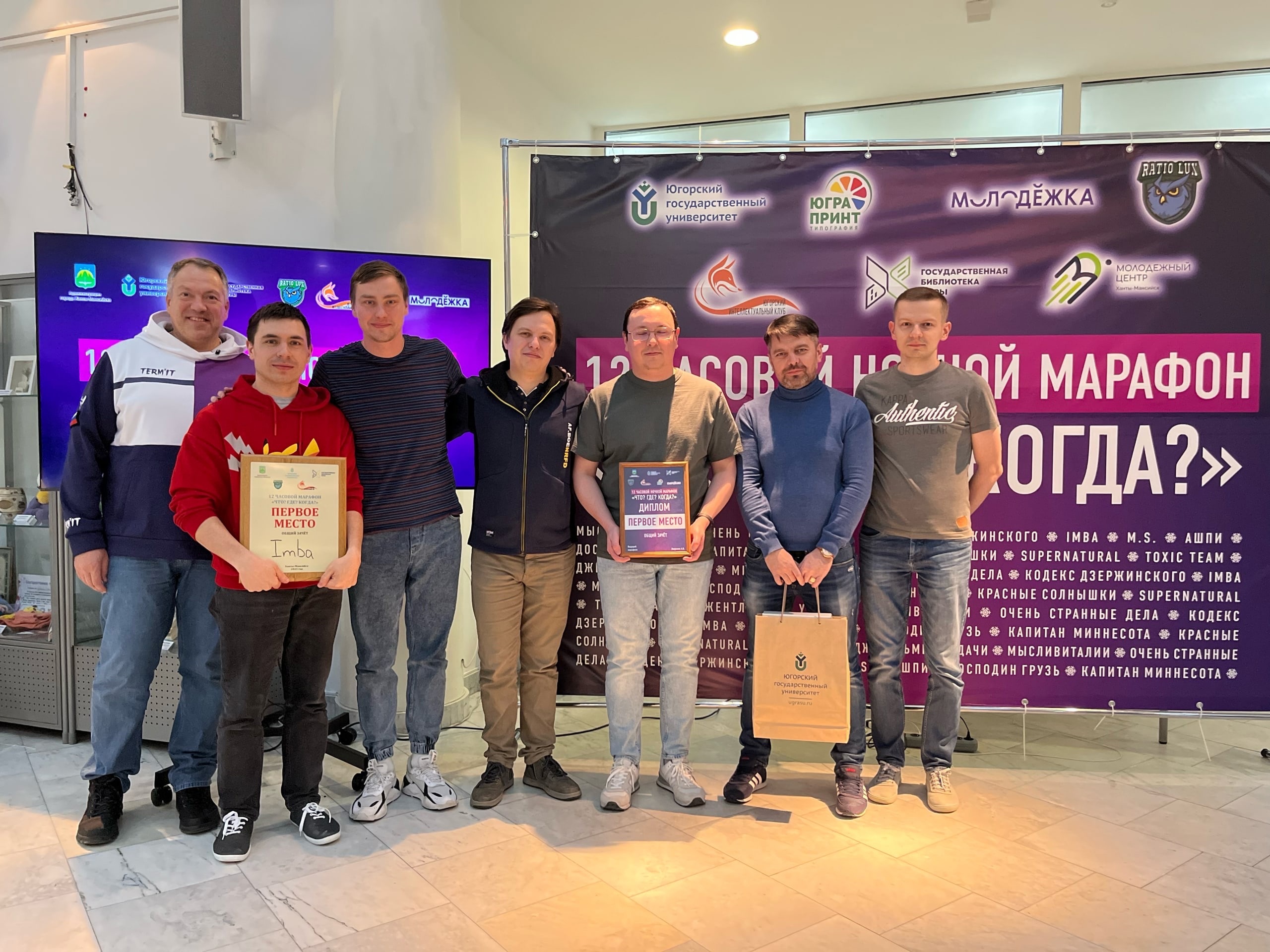 Югорский государственный университет; Региональная общественная организация «Югорский интеллектуальный клуб»; Государственная библиотека Югры; ООО «ЮГРА ПРИНТ»; Интеллектуальный клуб ЮГУ; Клуб интеллектуальных игр Ratio Lux. Мы поздравляем наших студентов – участников «ЧГК» с отличными результатами в игре и желаем им и в дальнейшем достигать интеллектуальные вершины!