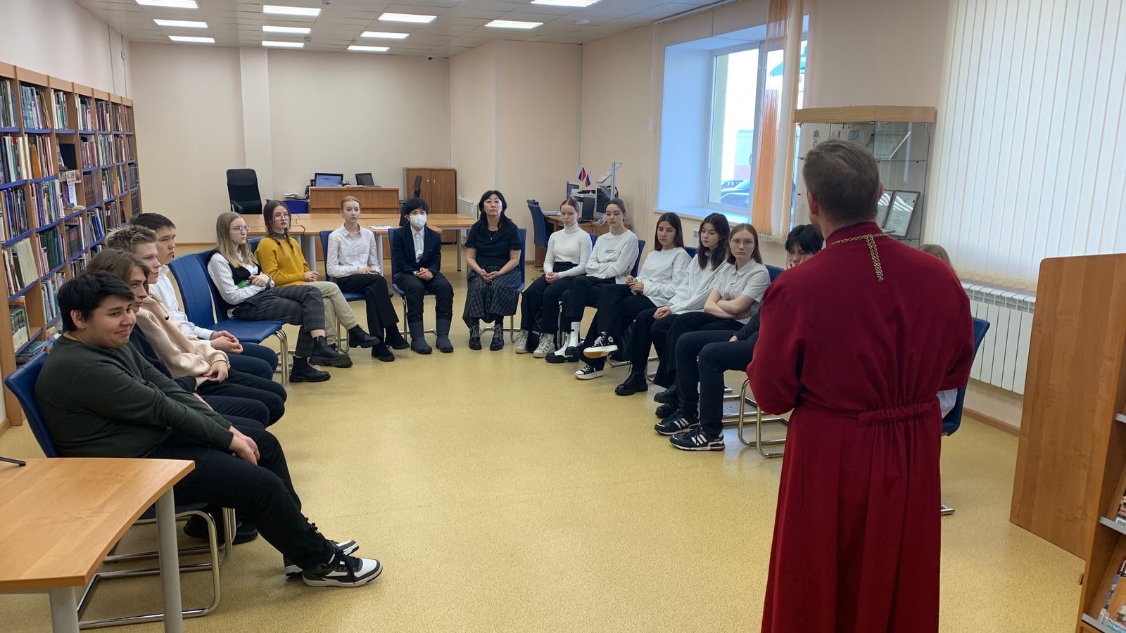 18 апреля иерей Георгий Болотов провел в библиотеке Нижневартовского района открытый урок для учеников 8 класса Средней школы №2 посёлка Излучинск.