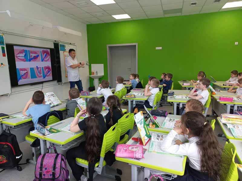 Сотрудники детского отделения Главной стоматологии Ханты-Мансийска - Наталья Геннадьевна Мокринская, Илья Андреевич Батуев, Величко Дарья Олеговна и Глущенко Венера Толгатовна на прошедшей неделе провели серию уроков гигиены для учащихся школа города Ханты-Мансийска: МБОУ СОШ №9, МБОУ СОШ №6 им.СиринаН.И. и МБОУ СОШ №1 им Ю.Г.Созонова.
