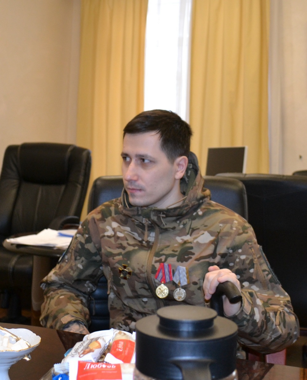 За чашкой чая собравшиеся обсудили дальнейшие планы бойца. В ближайшее время воину необходимо пройти углублённое медицинское обследование и поправить свое здоровье. Михаил получил множественные осколочные ранения, из-за которых испытывает постоянную боль в коленном суставе.