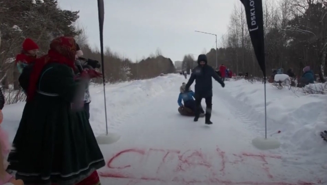 Масленицу принято встречать и провожать в кругу семьи. Поэтому гвоздем программы стали соревнования «Гонки на тюбингах» для родителей и малышей. Победителям полагался сертификат на покупку бытовой техники. Чтобы занять призовое место, семья должна была быстрее всех добежать до финиша – сначала на тюбинге папа катал маму на дистанцию 50 метров, а потом мама везла ребенка.