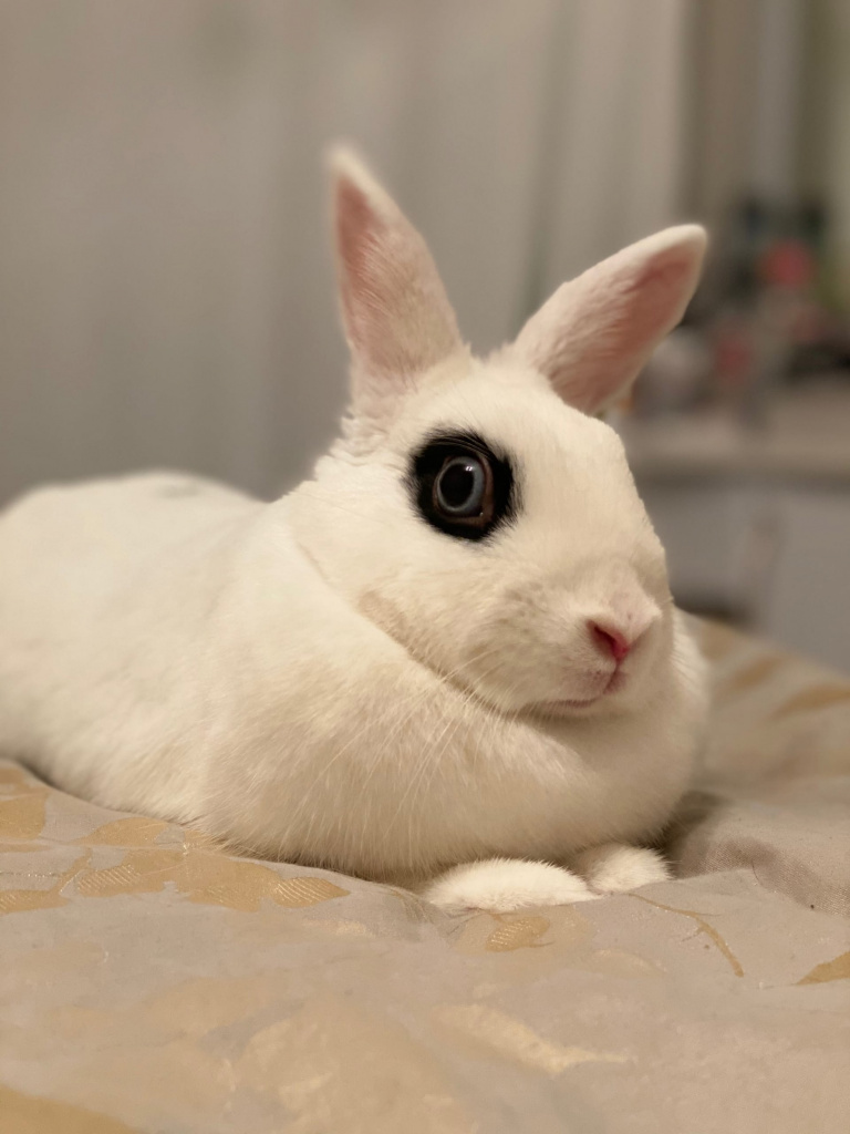 После Чарли в доме появилась красавица Лапуля, породы «хотот». У всех кроликов этой породы белоснежный окрас и своя изюминка, их глазки будто обведены черной каймой, что делает взгляд питомцев очень выразительным. Внешне они похожи на мягкую игрушку. Хотот – гладкошерстные кролики, вычесывать их не нужно. Несмотря на это, шерсти от них все равно много, и квартира требует уборки в два раза чаще.