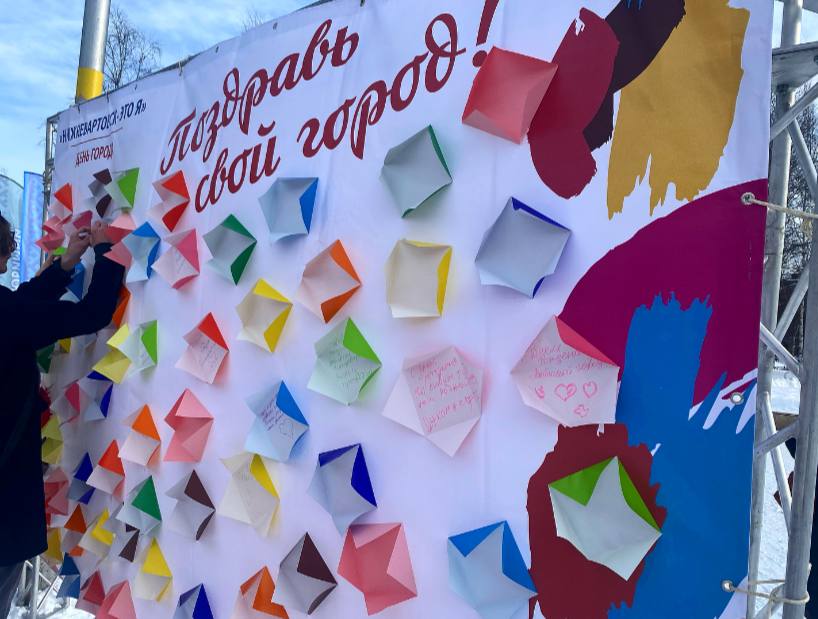 Главным атрибутом стала фотозона, где каждый житель мог поздравить любимый город с днем рождения. Большинство детей вместе с родителями написали свои пожелания в специальных открытках.