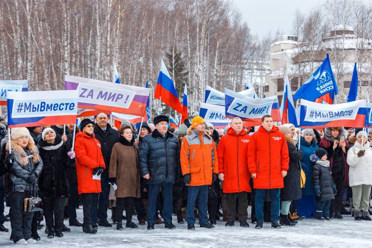 Отметим, что всего в митинге-концерте «Слава защитникам Отечества!» приняли участие около 2 тысяч 400 человек, в числе которых представители органов исполнительной, законодательной власти, местного самоуправления, работники предприятий и организаций Югры и Ханты-Мансийска, волонтёры, активисты, неравнодушные граждане.