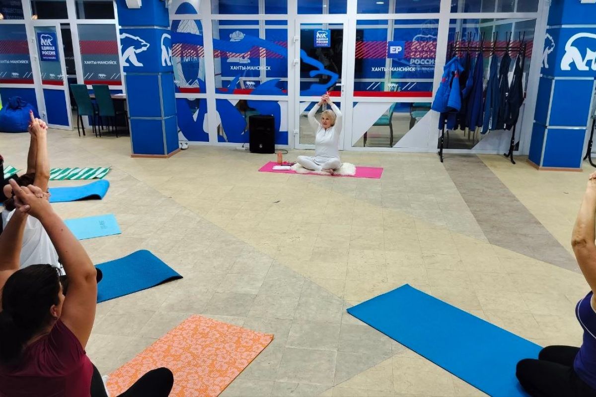 Первое занятие было организовано на базе штаба общественной поддержки. Мастер-класс по йоге здесь посетили 10 югорчанок.