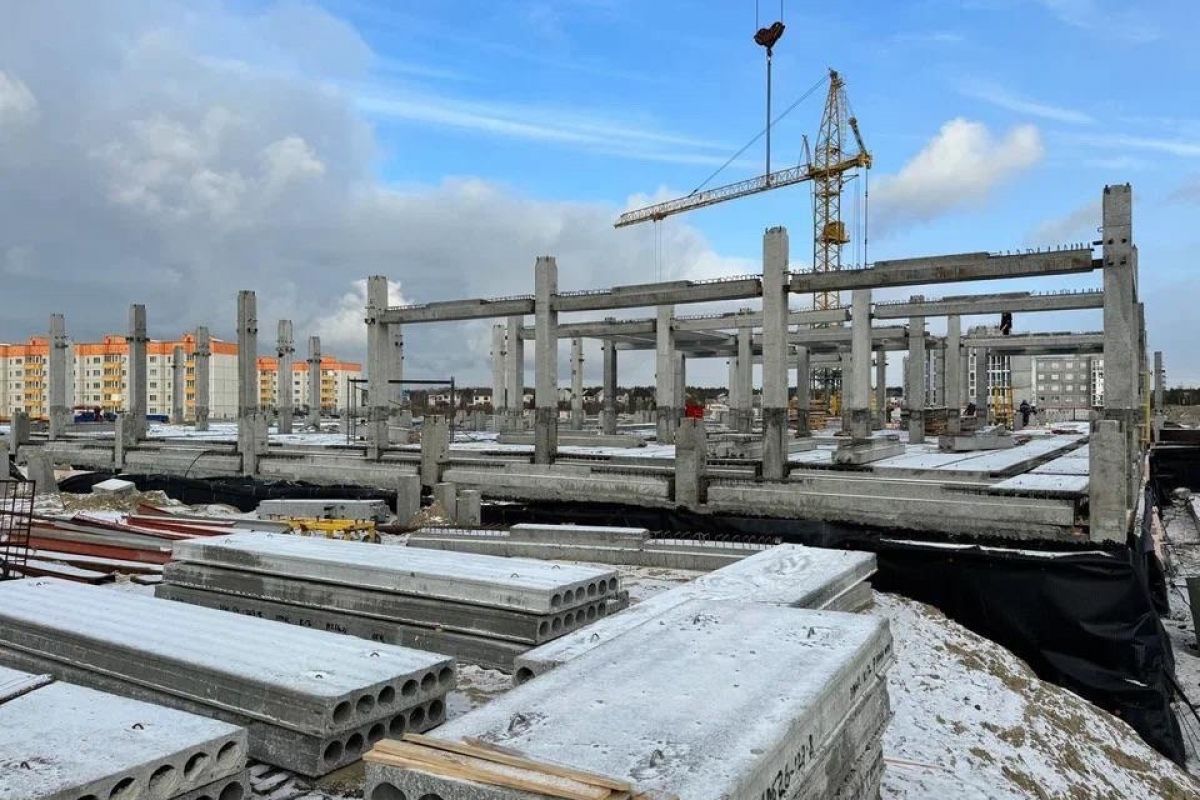В настоящее время достраивается первый этаж здания, компания-подрядчик устанавливает закладные под школьный бассейн.