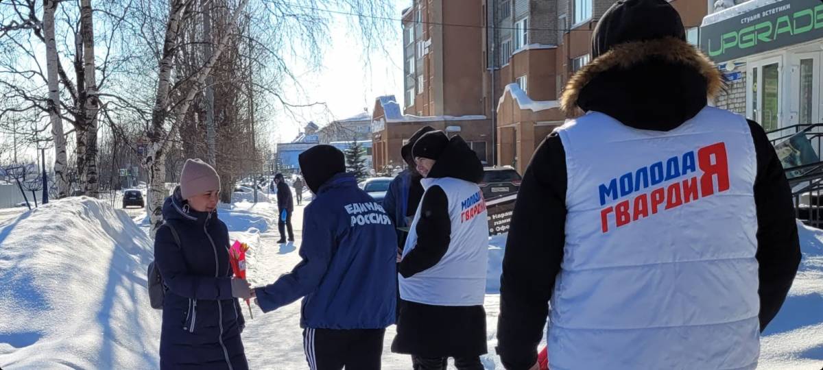Участие в поздравлении жительниц Советского с 8 марта также приняли активисты «Молодой гвардии» и сторонники «Единой России».