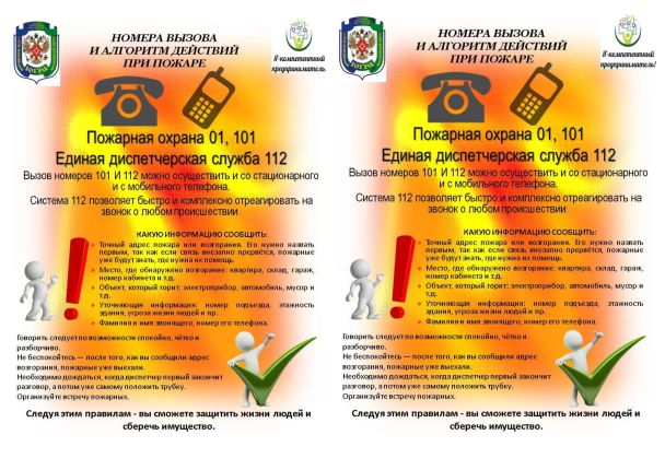 Позвоните по номеру 01,101 или 112 и сообщите о пожаре, продиктуйте адрес; Помогите находящимся в опасной зоне людям покинуть её, не подвергая себя опасности; Если распространение огня предотвратить не удалось, покиньте здание. После того, как на место прибудет команда спасателей, сообщите им всю необходимую информацию о пожаре; Если под рукой есть необходимые средства тушения пожара, то, не подвергая опасности свою жизнь и здоровье, приступите к тушению огня. Сообщите об угрозе находящимся в здании людям. Сделайте все необходимое для срабатывания пожарной сигнализации.Рекомендации МЧС: