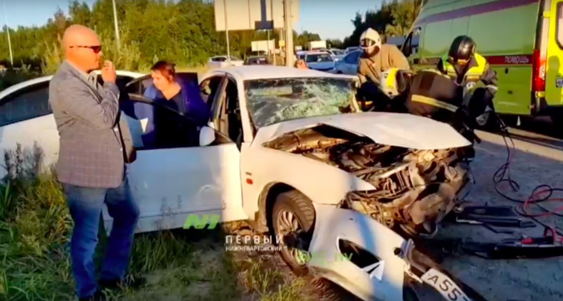 По предварительной информации 42-летний водитель Тойоты двигался со стороны Нижневартовск и выехал на встречку, где столкнулся с автомобилями Мицубиси и Киа, которые ехали в сторону города. В результате ДТП 44-летнего водителя и пассажира Мицубиси зажало в автомобиле. На скорой их увезли в больницу.