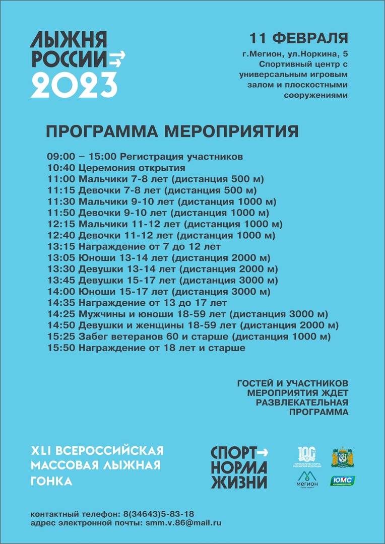 11 февраля в Мегионе пройдет Всероссийская массовая лыжная гонка «Лыжня России-2023»