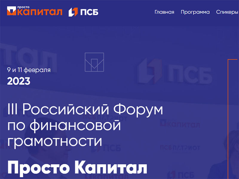 9 и 11 февраля 2023 года состоится III Всероссийский ежегодный форум по финансовой грамотности «Просто капитал», организованный ПАО «Промсвязьбанк».
