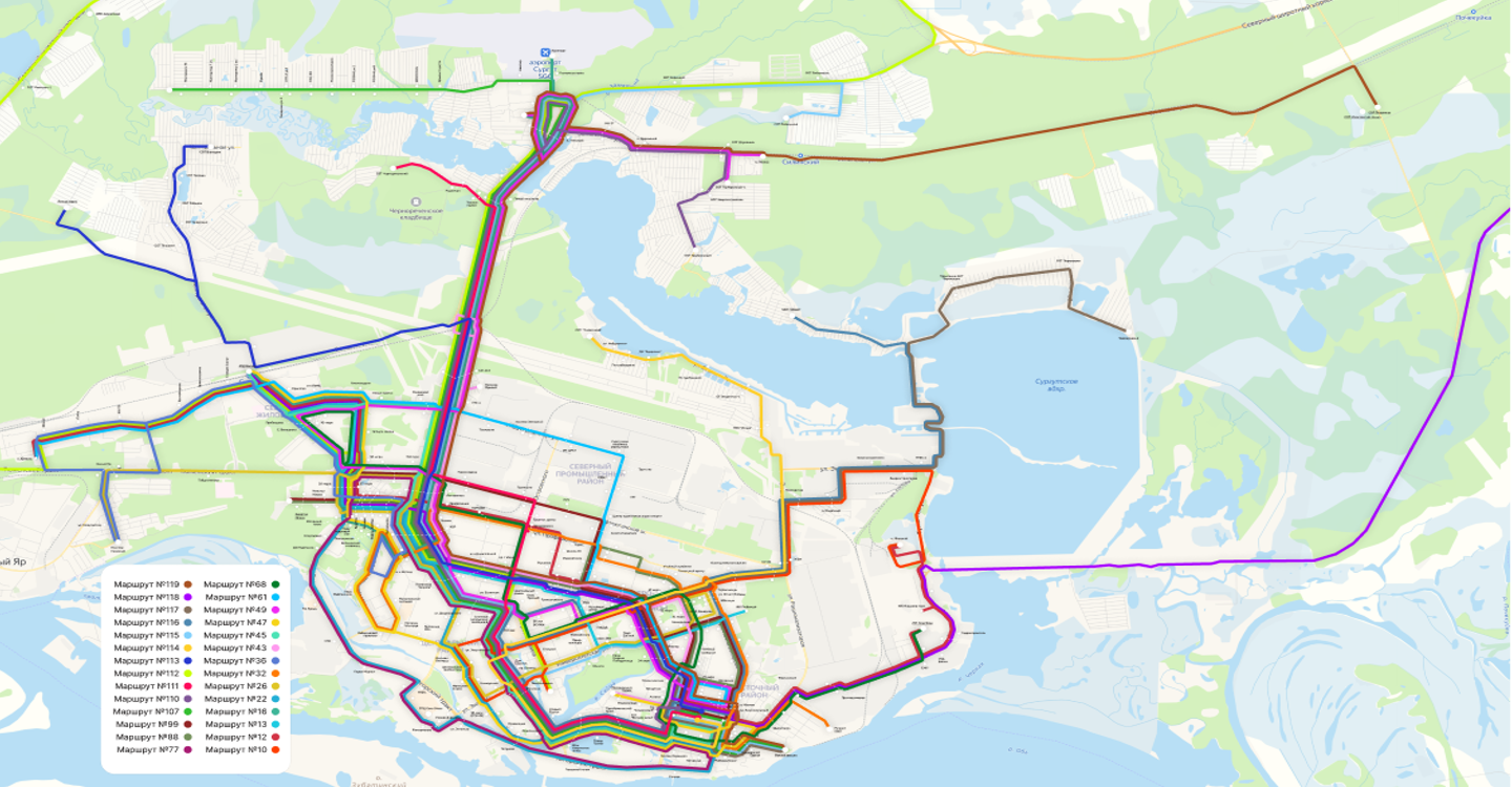 Ежедневно услугами общественного транспорта в Сургуте пользуются 74 тысяч человек. Исследования включали подсчёт пассажиропотоков по каждому маршруту и остановочному комплексу во всех микрорайонах, анализ существующей сети маршрутов, разработку предложений по совершенствованию сети муниципальных маршрутов.