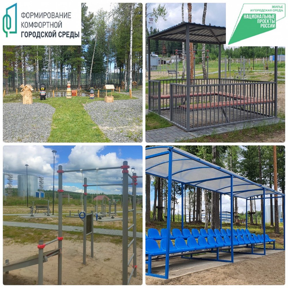 Выполнено устройство четырех беседок, зрительской трибуны, площадок для пейнтбола и воркаута, фотозоны. В рамках местного финансирования установлены дополнительные малые архитектурные формы, в том числе скамейки и урны, устроен пешеходный мостик, оформлен пруд, для профилактики вандализма по периметру территории установлено видеонаблюдение. В 2024 году работы по благоустройству лыжероллерной трассы «Спорт – это здоровье» будут продолжены. Запланирована установка волейбольной площадки, полосы препятствий и качелей.