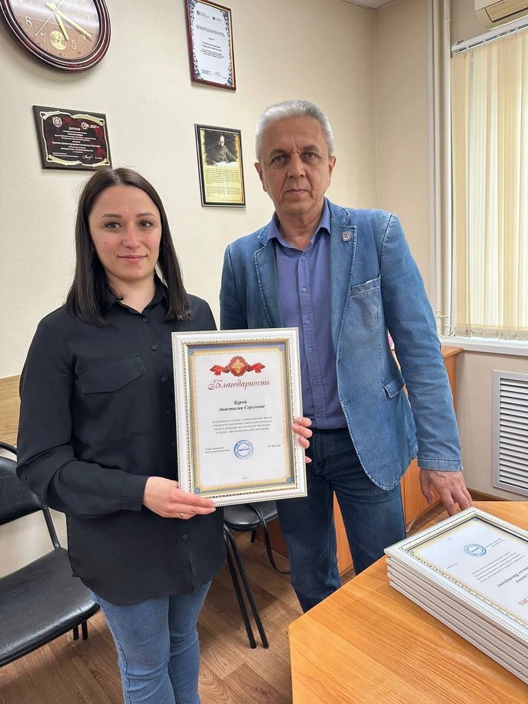 Заместитель председателя Молодежного парламента при Думе Ханты-Мансийского автономного округа – Югры Анастасия Бурая удостоена благодарности от Главы города Советский Александра Кулагина «за активную общественную деятельность и развитие молодежного движения» в рамках празднования Дня молодежи России, также благодарности получили активисты Молодежного совета города.
