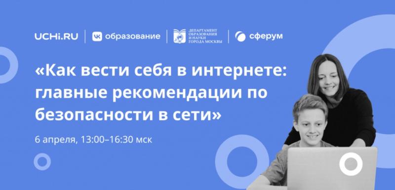 6 апреля VK Образование, Учи.ру, Сферум и Департамент образования и науки города Москвы проведут бесплатную конференцию на тему «Как вести себя в интернете: главные рекомендации по безопасности в сети». Зарегистрироваться на мероприятие можно на сайте проекта (https://distant.uchi.ru/lessonsforteachers).