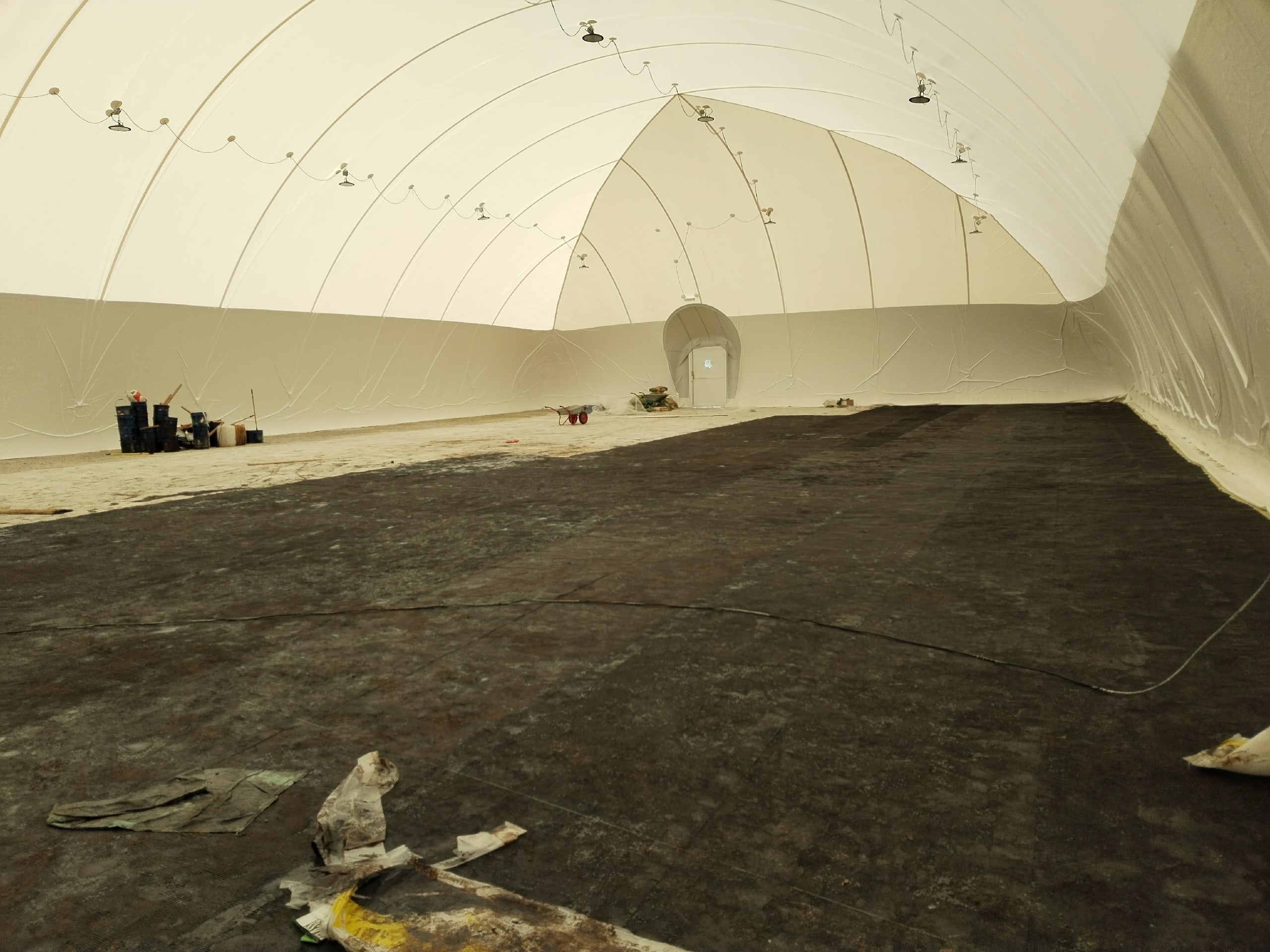 В Шеркалах продолжается оснащение воздухоопорного сооружения многофункционального спортивного зала