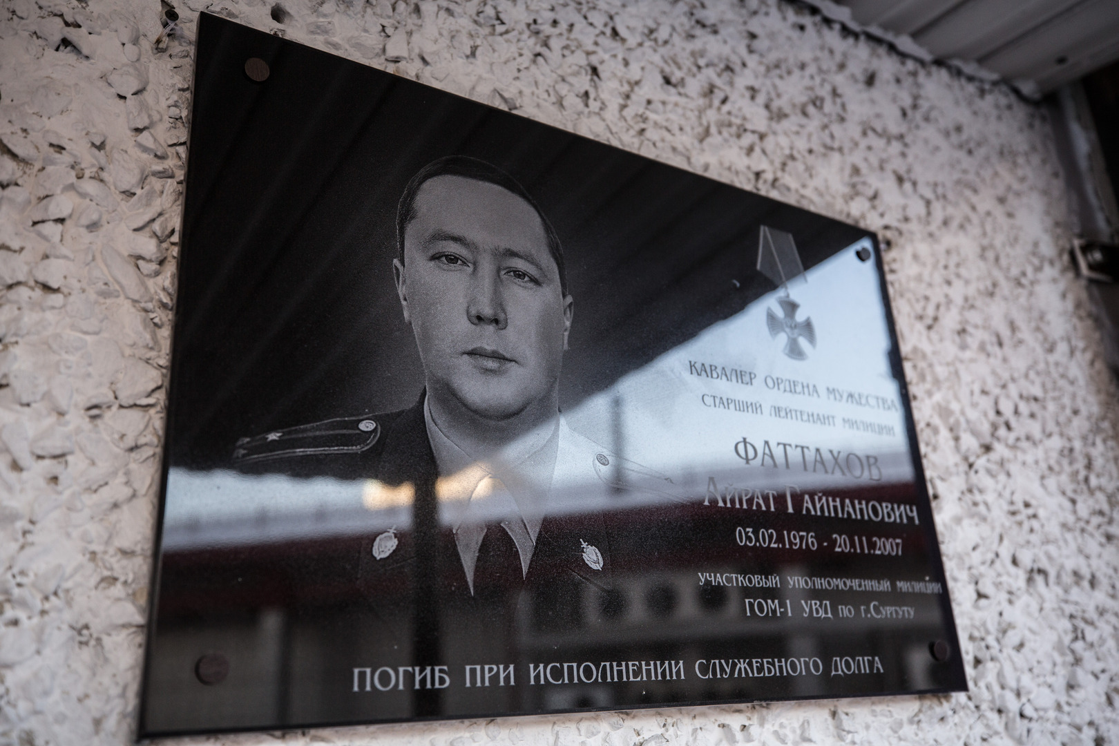 8 ноября перед входом в Участковый пункт полиции по адресу: Лермонтова, 7 открыли мемориальную доску старшему лейтенанту милиции, участковому уполномоченному милиции ГОМ-1 УМВД России по Сургуту Айрату Фаттахову.