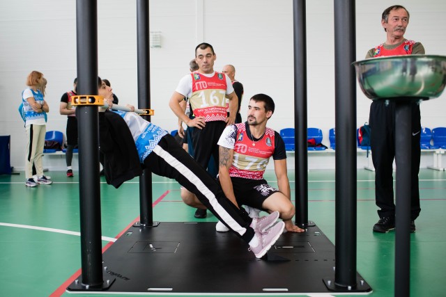 Эстафета состояла из пяти этапов: прыжок в длину с места, поднимание туловища из положения лежа на спине, отжимание, рывок гири и подтягивание.
