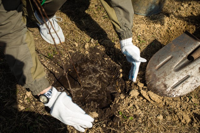 Первым посадил куст яблони председатель районной думы Валентин Полторацкий.