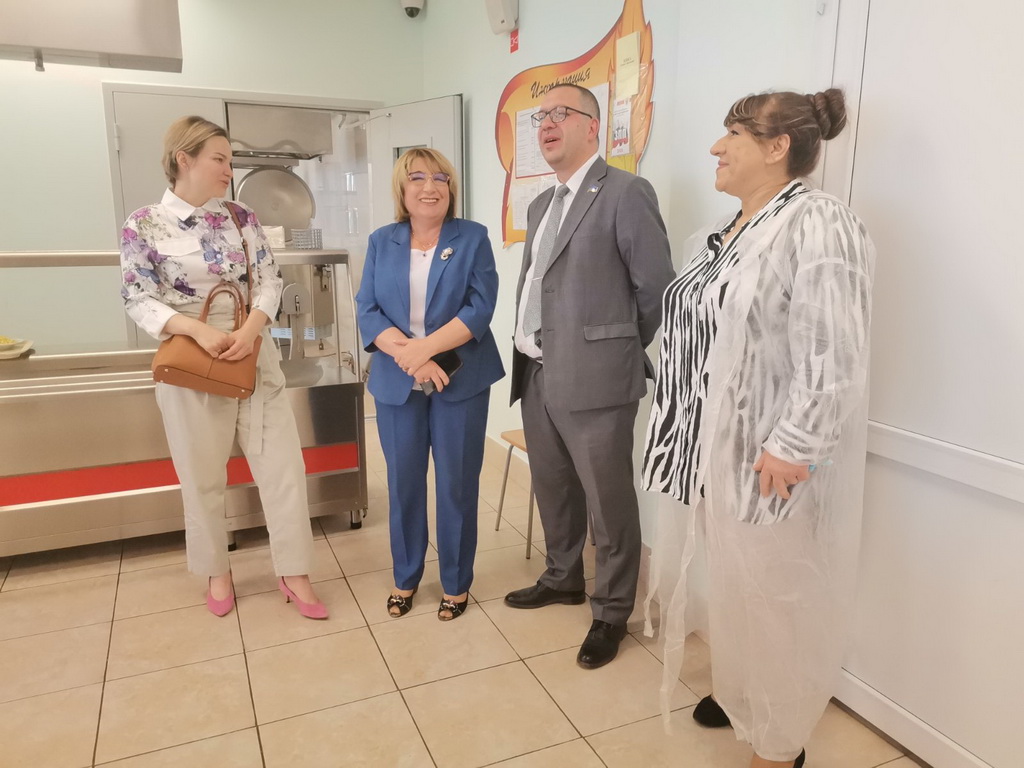 В Сургуте депутат Думы Югры Виктор Сысун и координатор первичного отделения №2 Сургутского местного отделения Александр Будяков проинспектировали питание в столовой нового корпуса школы «Перспектива».