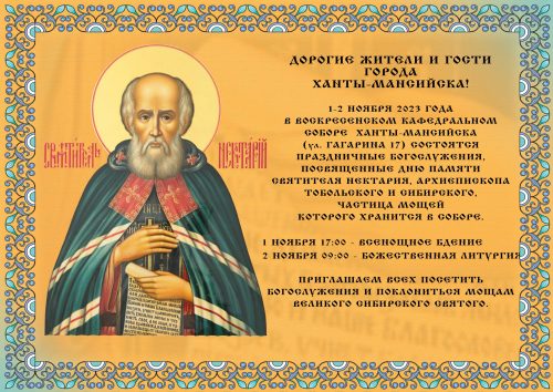 1-2 ноября в Ханты-Мансийске пройдут торжества посвященные дню памяти святителя Нектария Тобольского и Сибирского