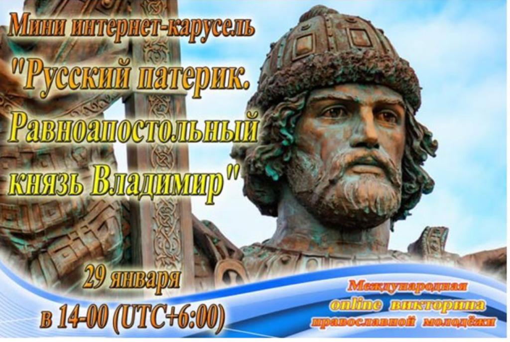 В Неделю 33-ю по Пятидесятнице молодёжная команда «Сибирский Благовест» под руководством протоиерея Павла Придатченко, клирика прихода храма в честь иконы Божией Матери «Всех скорбящих Радость» города Сургута приняла активное участие в мини интернет-карусели «Русский патерик. Равноапостольный князь Владимир». Вопросы викторины были из истории, жизни благоверного князя Владимира, его подвигов; о реформах на Руси благодаря великому князю, о его смерти и еще многих фактах, связанных с жизнью и правлением святого благоверного князя Владимира.