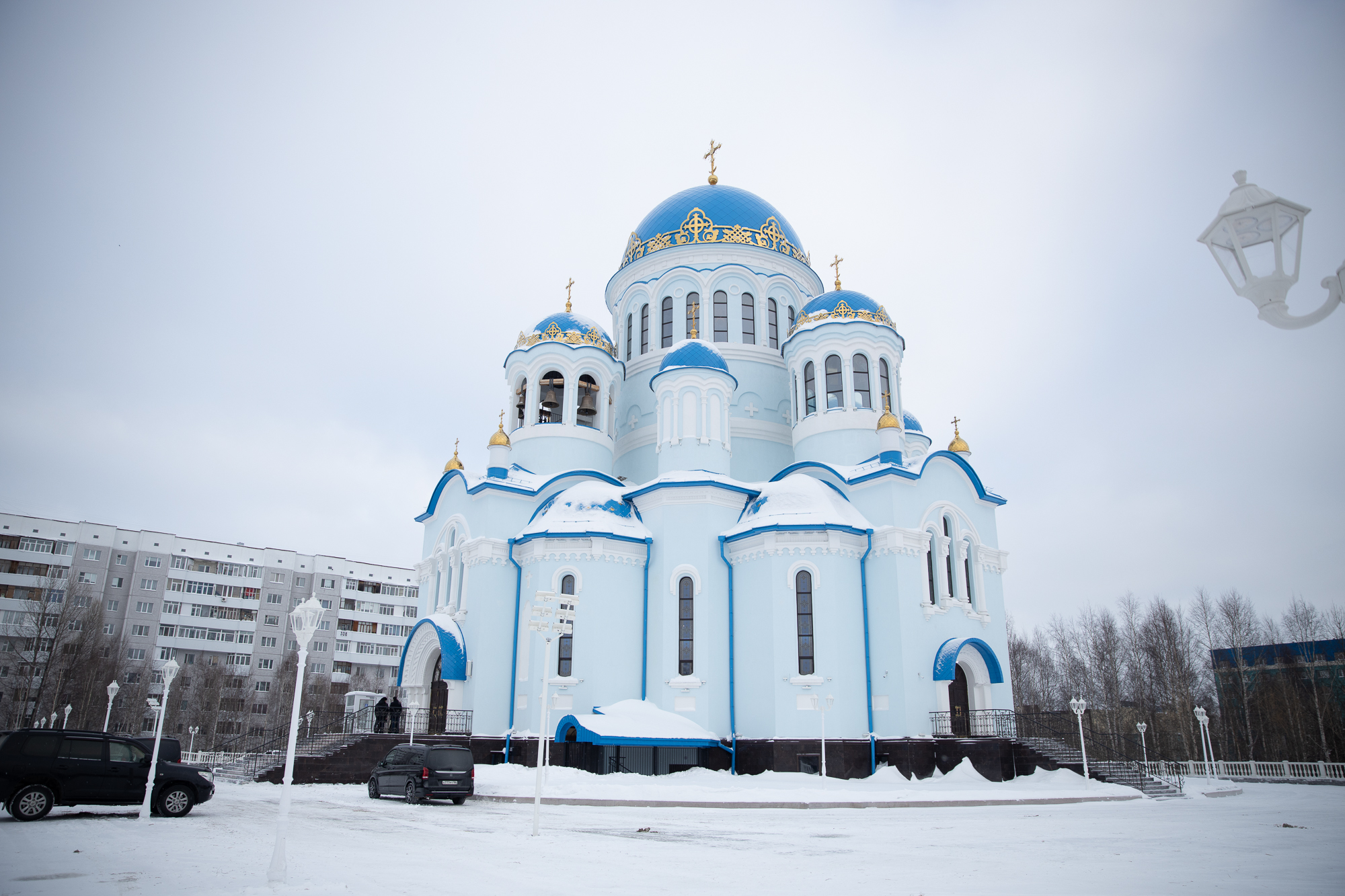 Великолепный иконостас, потрясающая роспись, покрывшая 5 тысяч квадратных метров и масса интересных решений- от подземной парковки до подсветки собора и благоустроенной особым образом территории — все это ставит Троицкий собор в главный храмостроительный ряд России. Сейчас собор готовят к Великому освещению, которое по плану в мае будет совершать Святейший Патриарх Московский и всея Руси Кирилл. На сегодня практически все строительные работы завершены, как внутри помещения, так и снаружи. Осталось закончить полировку пола в храме, в алтаре приготовить престол и жертвенник, установить всю необходимую церковную утварь. Кафедральный Свято-Троицкий Собор безусловно, станет визитной карточкой нашего округа и достоянием города Сургута.