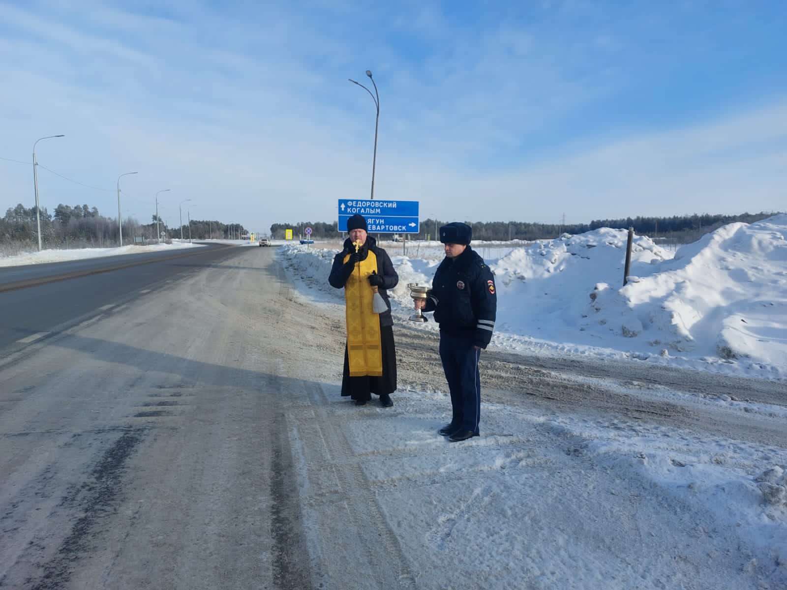 Священник совершил чин освящения опасных участков автодорог Сургутского района