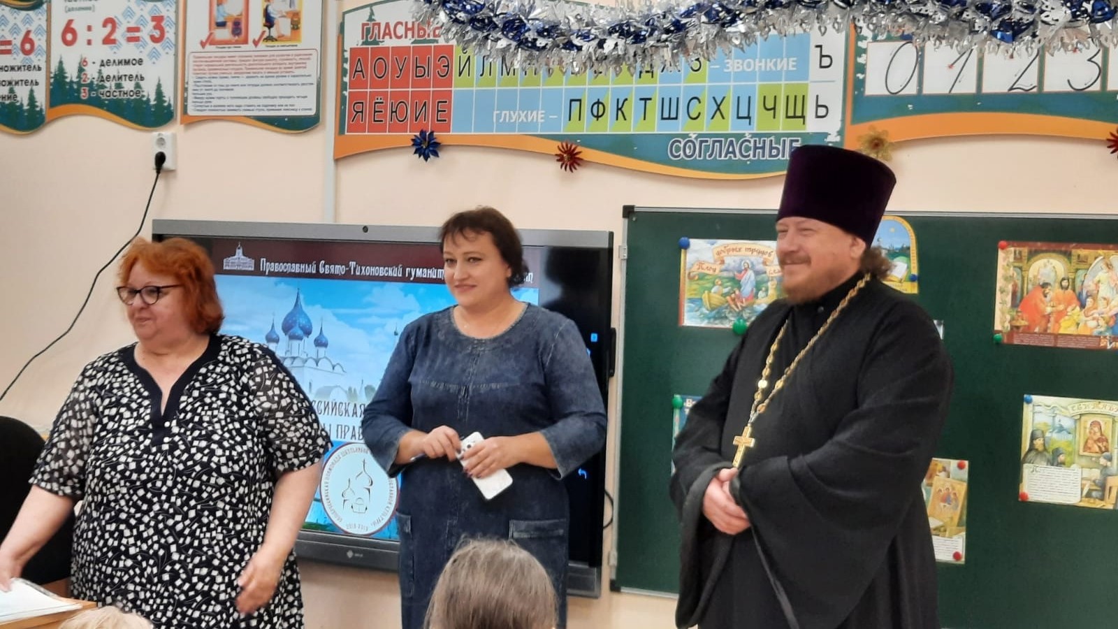 Священник выступил перед учениками, в частности сказав « Искренне радуюсь, что в школах Нефтеюганского района стало доброй традицией проводить олимпиаду по Основам Православной Культуры.