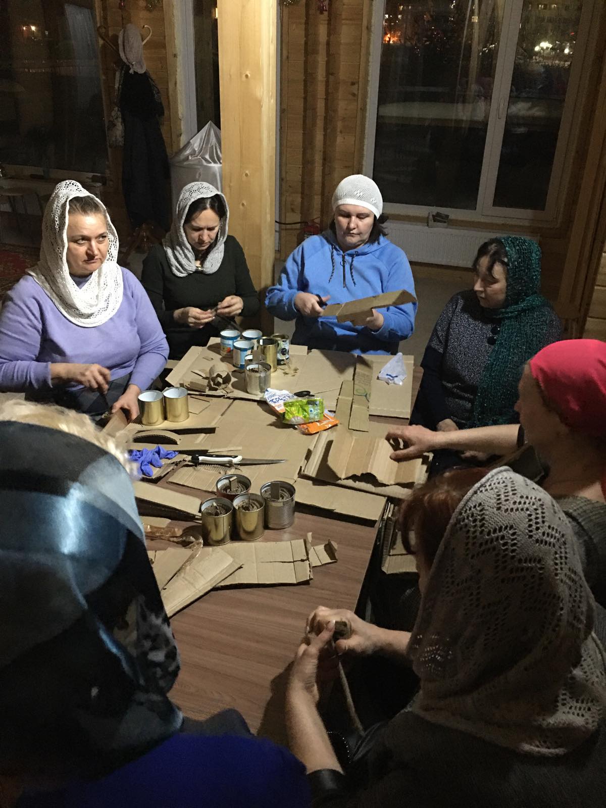 Волонтёры общества трезвости «Здравие» г. Нефтеюганска готовят свечи для отправки в зону боевых действий