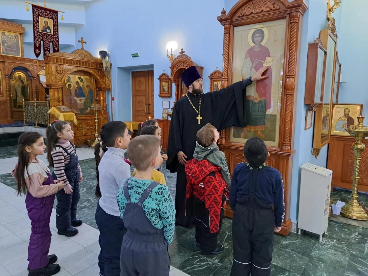 7 февраля воспитанники подготовительных групп детского сада «Солнышко» посетили Храм Покрова Божией Матери, где настоятель Храма, иерей Виталий, познакомил дошколят с историческими фактами появления местной церкви,