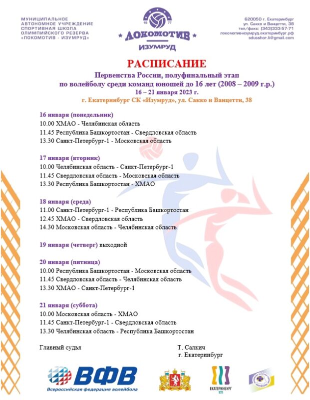 В Екатеринбурге проходят игры полуфинального этапа Первенства России по волейболу среди команд юношей до 16 лет (2008-2009 г.р.).