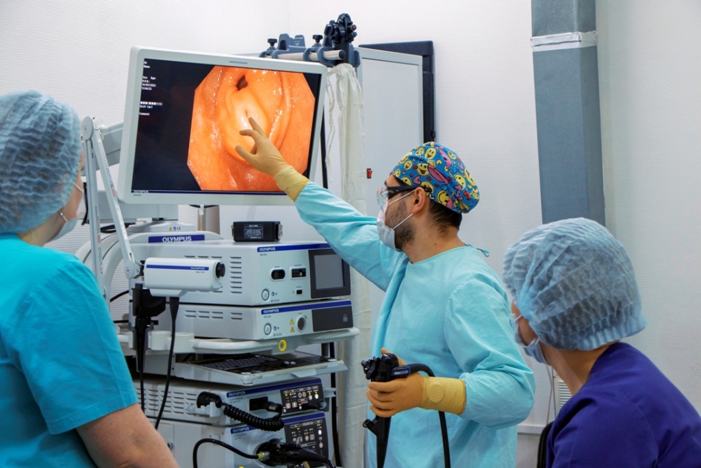 Для работы на современном оборудовании врач-эндоскопист Армен Оганян прошёл обучение в ведущем федеральном центре МКНЦ им. А.С.Логинова под руководством, признанного международным сообществом эксперта Елены Парфенчиковой и теперь внедряет исследования в повседневную диагностическую практику отделения.