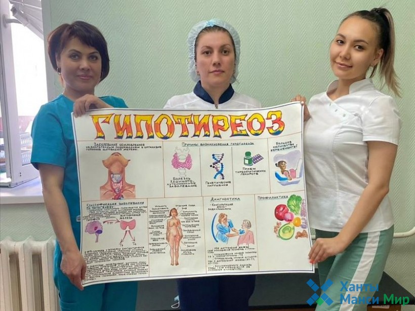 В БУ «Федоровская городская больница» проходят профилактические мероприятия, приуроченные ко Всемирному дню щитовидной железы. Врач-эндокринолог проводит обучающие мероприятия по заболеваниям щитовидной железы для медицинского персонала. Медицинские сестры поликлиники выпустили санбюллетень об одном из распространенных заболеваний щитовидной железы – гипотиреозе. Врачи отделения общей врачебной практики проводят беседы с населением по профилактике заболеваний щитовидной железы, фельдшер кабинета медицинской профилактики совместно с медицинскими сестрами участковыми распространяют памятки среди посетителей учреждения.