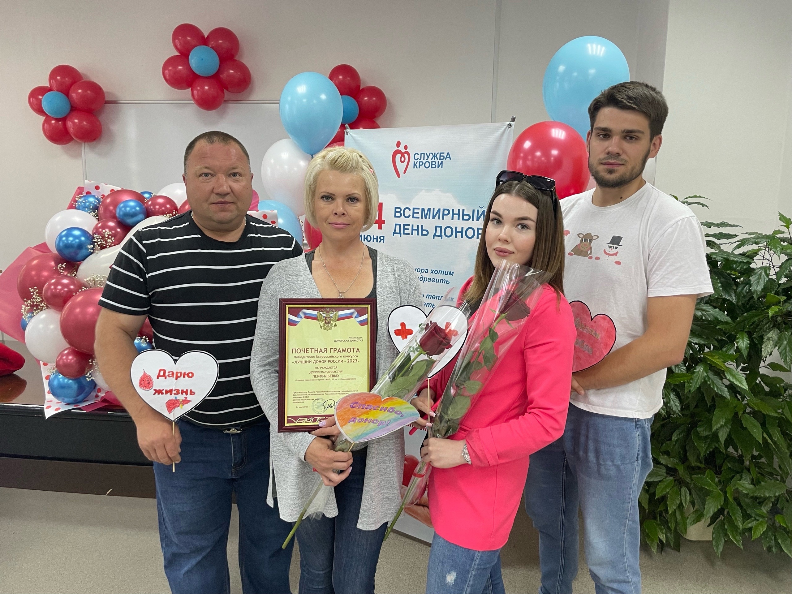 На конкурсе Российской ассоциации трансфузиологов «Лучший донор России – 2023» семья Перфильевых из Нижневартовска одержала победу в номинации «Донорская династия».