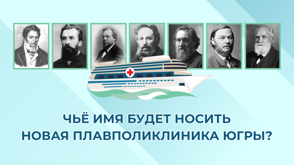 Окружной департамент здравоохранения, предлагает жителям региона пройти онлайн-опрос, чтобы выбрать новому теплоходу имя одного из семи знаменитых врачей нашей страны. В их числе: