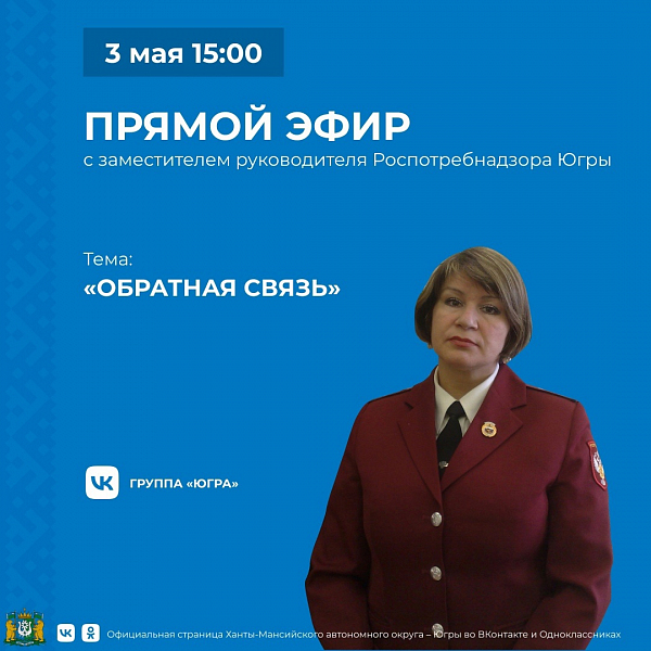 Трансляция «Обратная связь» пройдет 3 мая в 15:00 в группе «Югра». Вопросы можно оставлять уже сейчас под постом об эфире в сообществе "Югра" в ВК.