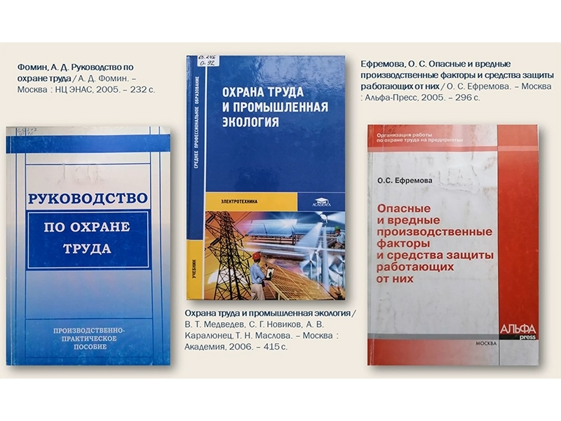 Первая выставка посвящена вопросам охраны труда. Она включает в себя разнообразные литературные источники, которые помогут как специалистам, так и рядовым гражданам лучше понять важность соблюдения правил безопасности на рабочем месте.