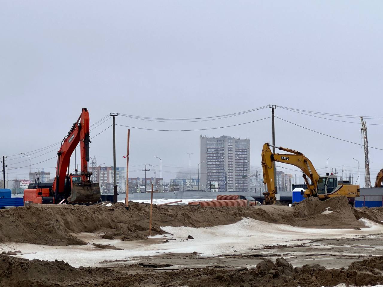В настоящий момент проложено 166 м из 4000 м трубопровода сетей теплоснабжения. Уже ведутся работы по устройству колодцев, прокладка трубы сетей водоснабжения и водоотведения.