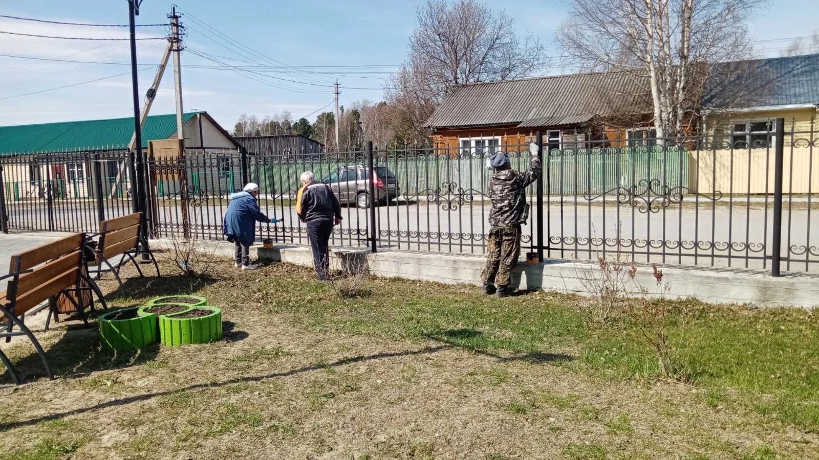 Продолжилась покраска ограды, а также клумб, которые были подготовлены для посадки цветов.